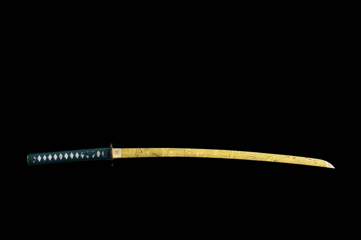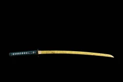 1045 carbon steel is reactive to moisture and should be wiped clean with a soft cloth after every handling session, then lightly coated with a thin layer of choji oil or mineral oil to prevent oxidation — never leave fingerprints on the blade surface, as the acids in skin can etch the steel within hours. The piano-lacquered saya is moisture-sensitive; avoid storing the sword sheathed in humid environments for extended periods, as trapped humidity can cause the lacquer to cloud or the wood to swell against the blade. Inspect the cotton ito wrap periodically for loosening and re-bind if any diamond panels shift, as a secure grip is essential for safe practice.