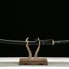 T10 tool steel is slightly less forgiving of neglect than lower-carbon steels — its higher carbon content makes it more reactive to moisture and acidic contact, so the blade should be wiped clean and oiled with choji or mineral oil immediately after any use or handling. The 烤金 gold-oxide surface provides mild passive protection but should not be scrubbed aggressively; use a soft cloth for cleaning and avoid acidic rust-removal products that may strip the finish and expose bare steel unevenly.