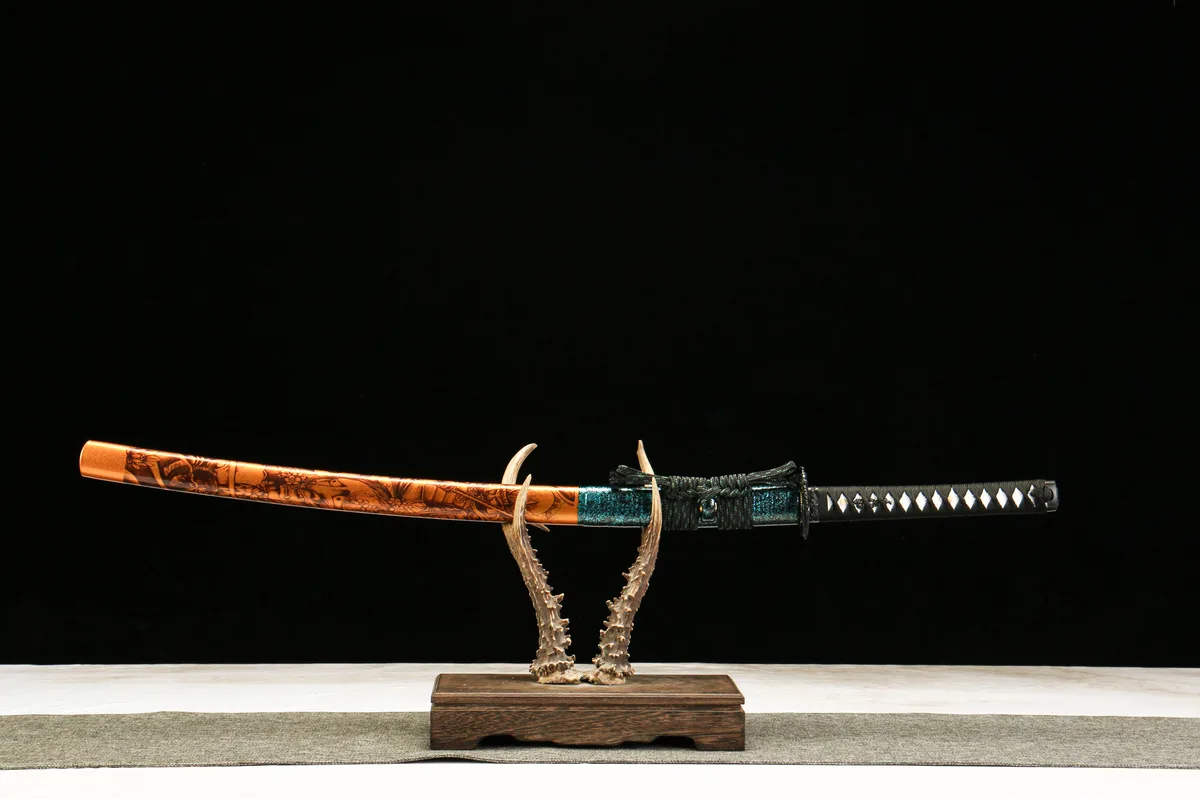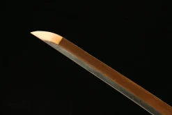 T10 is a high-carbon tool steel containing approximately 1.0% carbon along with trace tungsten, giving it excellent wear resistance and the ability to hold a very sharp, hard edge. It is harder than 1065 steel and widely considered an intermediate-to-advanced blade steel for functional katana. The Dark Gold Radiance uses T10 to achieve superior cutting sharpness and edge retention, making it a strong performer for the $180 price point.