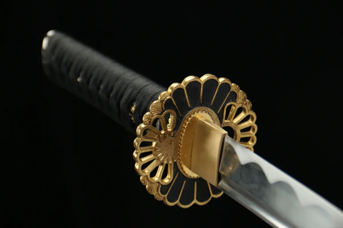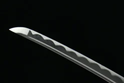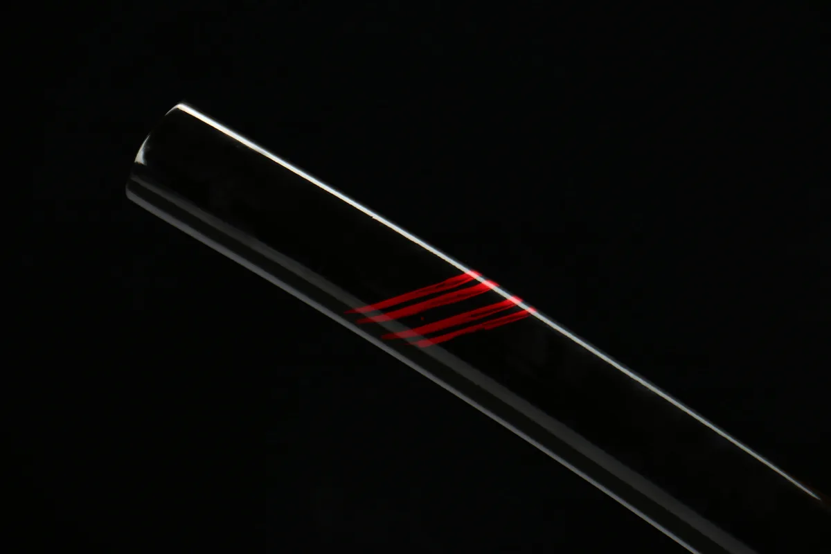 1045 carbon steel is reactive to moisture and will develop surface rust if left unprotected — wipe the blade clean after every handling session and apply a thin coat of choji or mineral oil every 2–4 weeks to maintain the finish. Keep the sword stored in its Aohada saya in a low-humidity environment, and avoid leaving fingerprints on the polished blade surface, as skin oils accelerate oxidation. A light application of uchiko powder followed by a clean nuguigami cloth will keep the blade’s surface bright and protected over time.