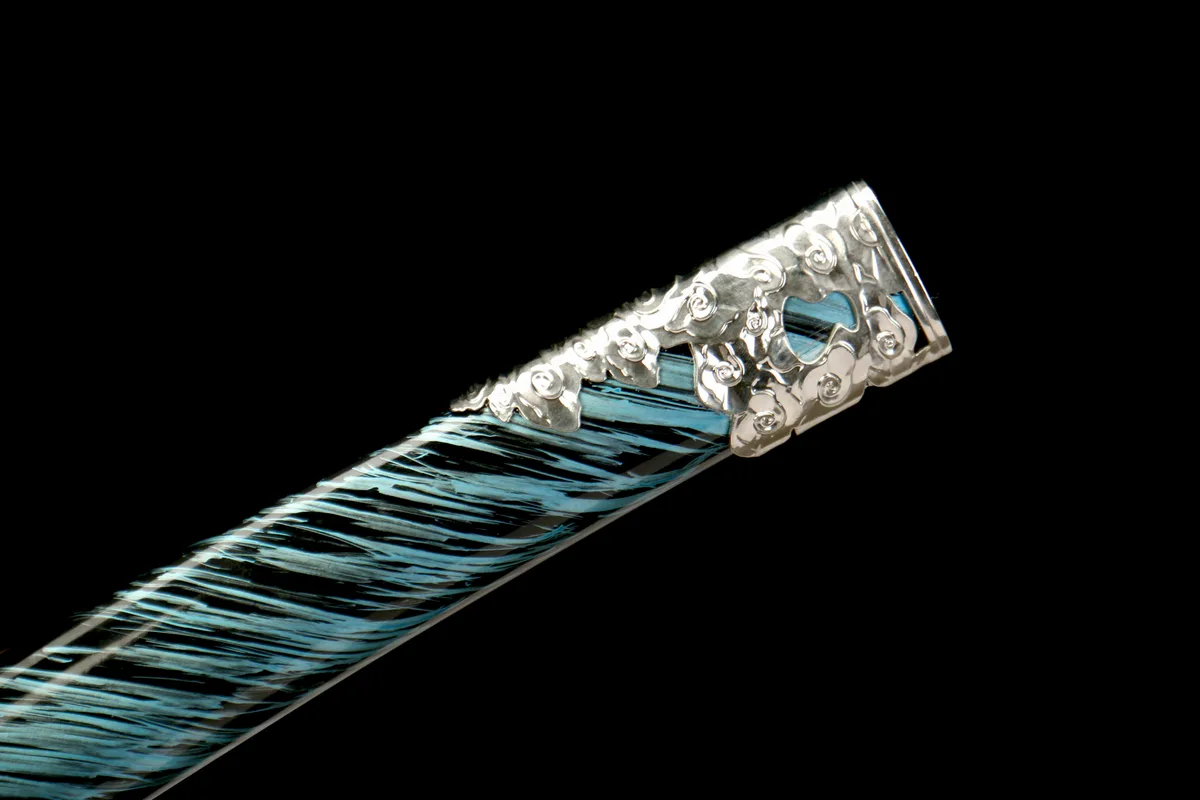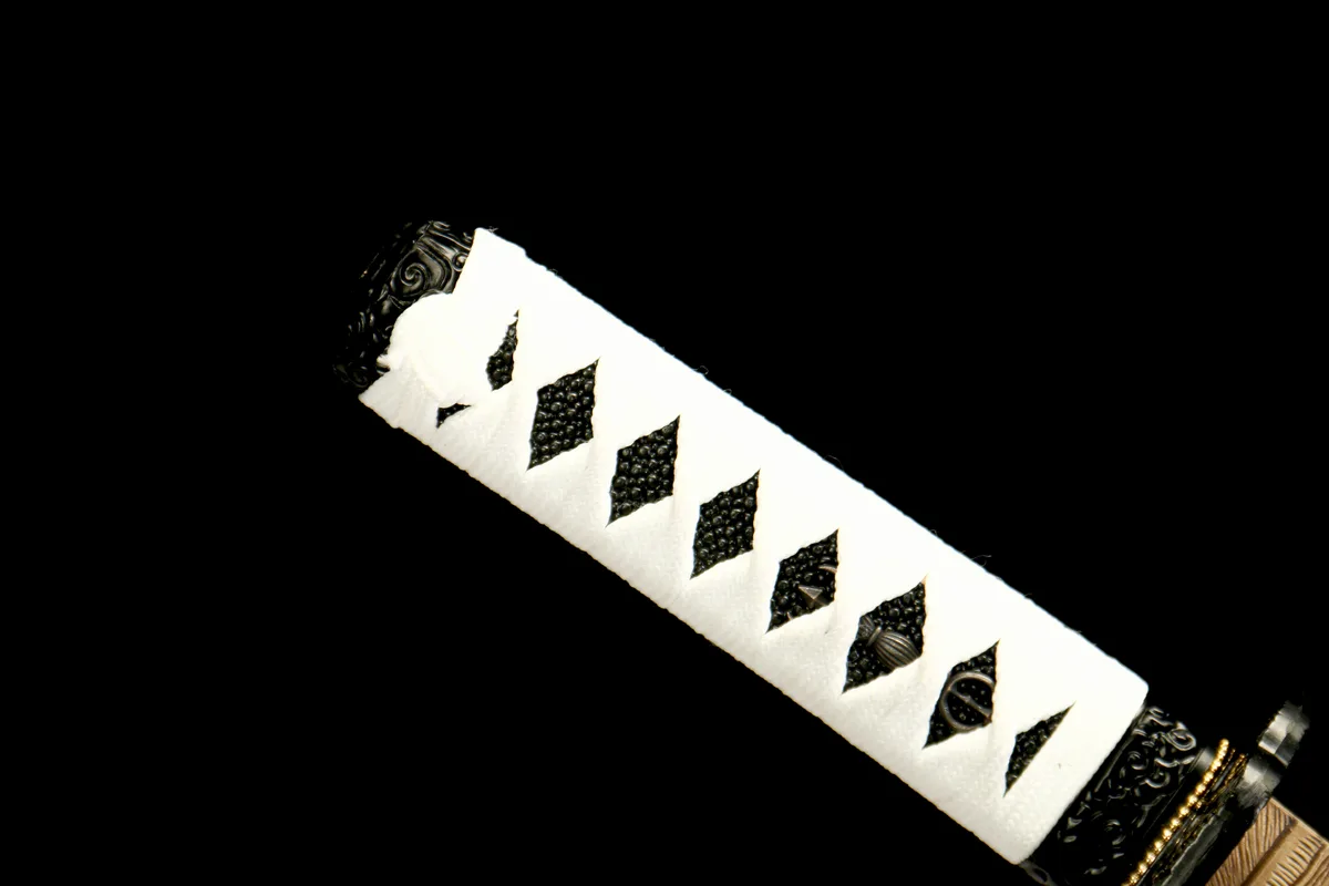 Choosing T10 tool steel for a $250 katana is a statement of intent from the Longquan smiths behind this blade. T10 — a tungsten-enhanced high carbon steel in the 0.95–1.05% carbon range — demands more precise temperature control during forging and heat treatment than the more common 1060 or 1065 steels, but rewards that extra attention with superior edge retention and wear resistance at the cutting edge. For a Ghost of Tsushima tribute piece, where the blade must look extraordinary under display lighting, T10’s capacity to take a mirror-bright polish makes it the natural choice. The steel’s fine grain structure, revealed during the polishing stages, gives the blade a depth and clarity that catches and holds light in a way that plainer carbon steels simply cannot match.