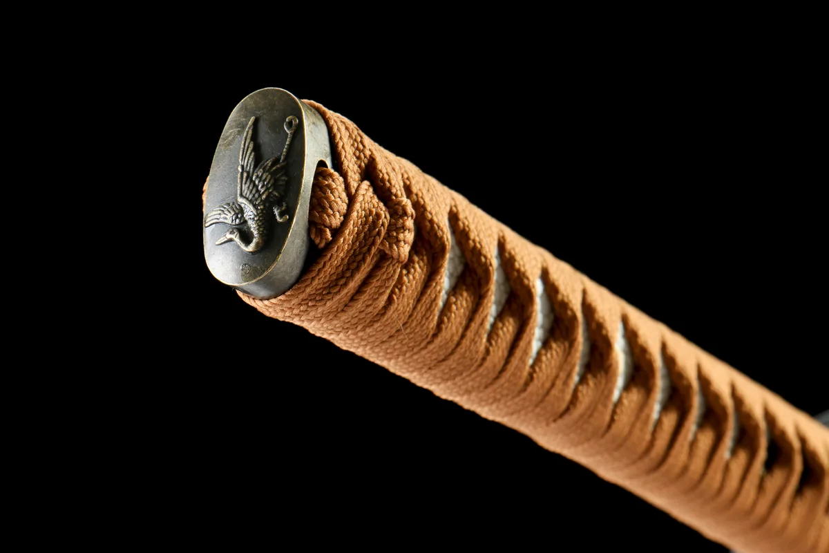 The crane — immortal, elegant, a symbol of longevity and purity across both Chinese and Japanese tradition — is worked into the iron fittings of the Pure Heart with the care of a craftsman who understands that a tsuba is not merely a hand guard but a statement of intent. Iron fittings at this price are already a mark of quality; iron fittings dressed with hand-finished crane imagery elevate Pure Heart into a category that transcends its price bracket. The fittings carry that characteristic iron weight and darkness, grounding the sword visually even as the crane imagery lifts it into something more lyrical.