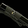 1045 carbon steel blade with special surface finish, alloy fittings and green bark wood saya