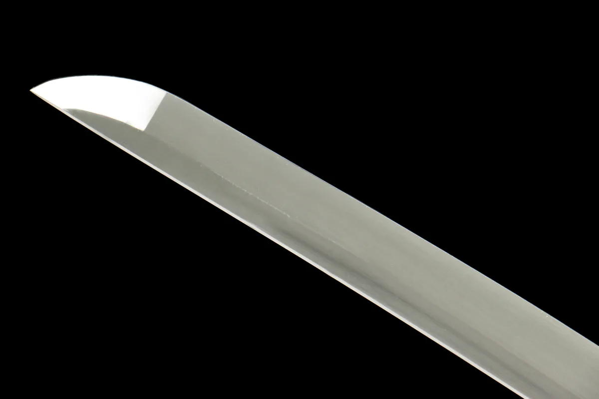 1065 high carbon steel responds well to consistent care: after cutting practice, remove all moisture and debris immediately with a soft cloth, then apply a thin, even coat of choji oil to prevent oxidation. Because this steel is fully hardened through the heat treatment, the edge can be sharpened with whetstones — work through progressively finer grits to restore the factory edge geometry. Store horizontally in the saya in a stable, low-humidity environment, and re-oil the blade every 3–4 months if kept in long-term storage.